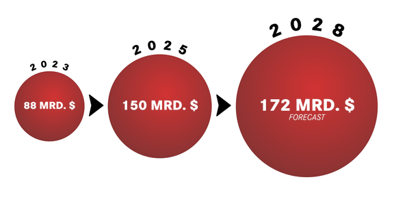 Die starke Zunahme an Fraud-Websites korreliert stark mit der Verbreitung von Generative AI und verhindert, dass Advertiser diesem Problem manuell Herr werden können. "Made for Advertising"-Seiten werden täglich gezielt neu registriert, um günstige Impressionen und Fake-Clicks zu erzeugen. Dabei werden Anzeigen zum Teil sogar übereinander gelegt (sog. Ad Stacking), um Werbeplatzierungen gar mehrfach zu verkaufen. Der riesige Betrug um Ad-Fraud wird durch Zahlen von Statista nochmal sehr deutlich. Zwischen 2023 und 2028 soll sich der Schaden weltweit schätzungsweise von insgesamt 88 Mrd. $ auf 172 Mrd. $ fast verdoppeln.