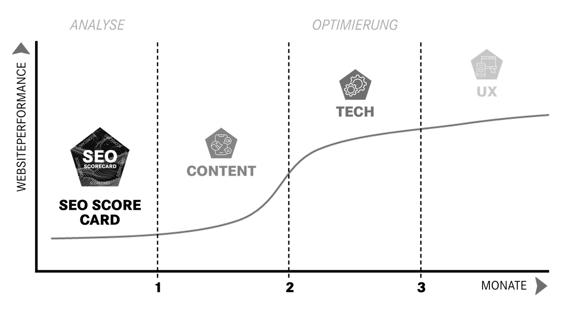 Unsere Scorecard bewertet Deine Website in den Bereichen technisches SEO, Content und UX und liefert Dir individuelle Handlungsempfehlungen für nachhaltig bessere Rankings.